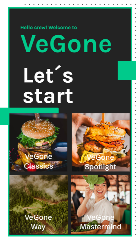 This project showcases a mobile app design for a fictional vegan fast-food chain, VeGone. It focuses on employee onboarding, featuring an engaging explainer video on core values, interactive quizzes, and product information to train the knowledgeable and passionate VeGone staff.
